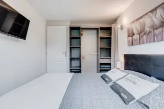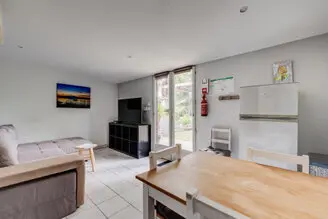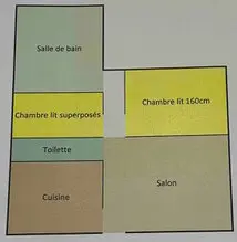 - Capacité : deux chambres, 1 lit 160cm et l’autre avec 2 lits superposés, un canapé convertible