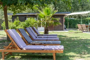Chalet climatisé de 45m², terrain et piscine à usage exclusif et privé des occupants, non partagés avec d’autres locataires ou propriétaire.
