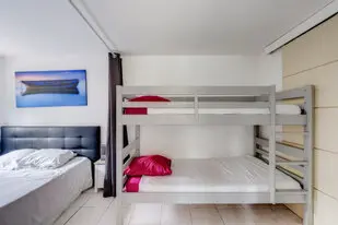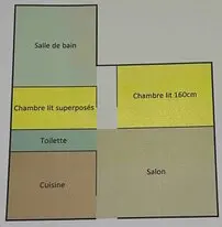 - Capacité : 1 grande chambre + lit 140cm et lit superposé + canapé convertible